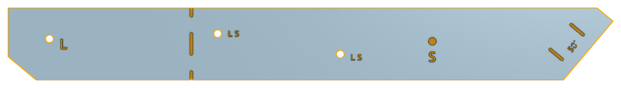 Each leg frame has two legs: a long forwards leg (L), and a short backwards leg (S),