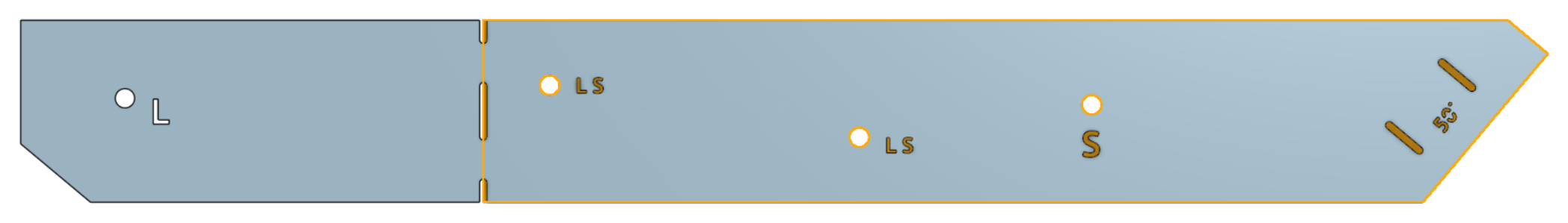 The L long leg piece. Uses the full template. Mark the top (left) three holes (furthest from the angled foot). |