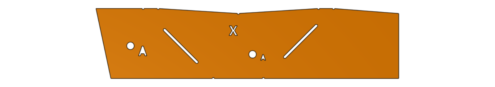 The A seat rest piece. Mark both holes. The X cross-brace trapezoid is also included on this template. |